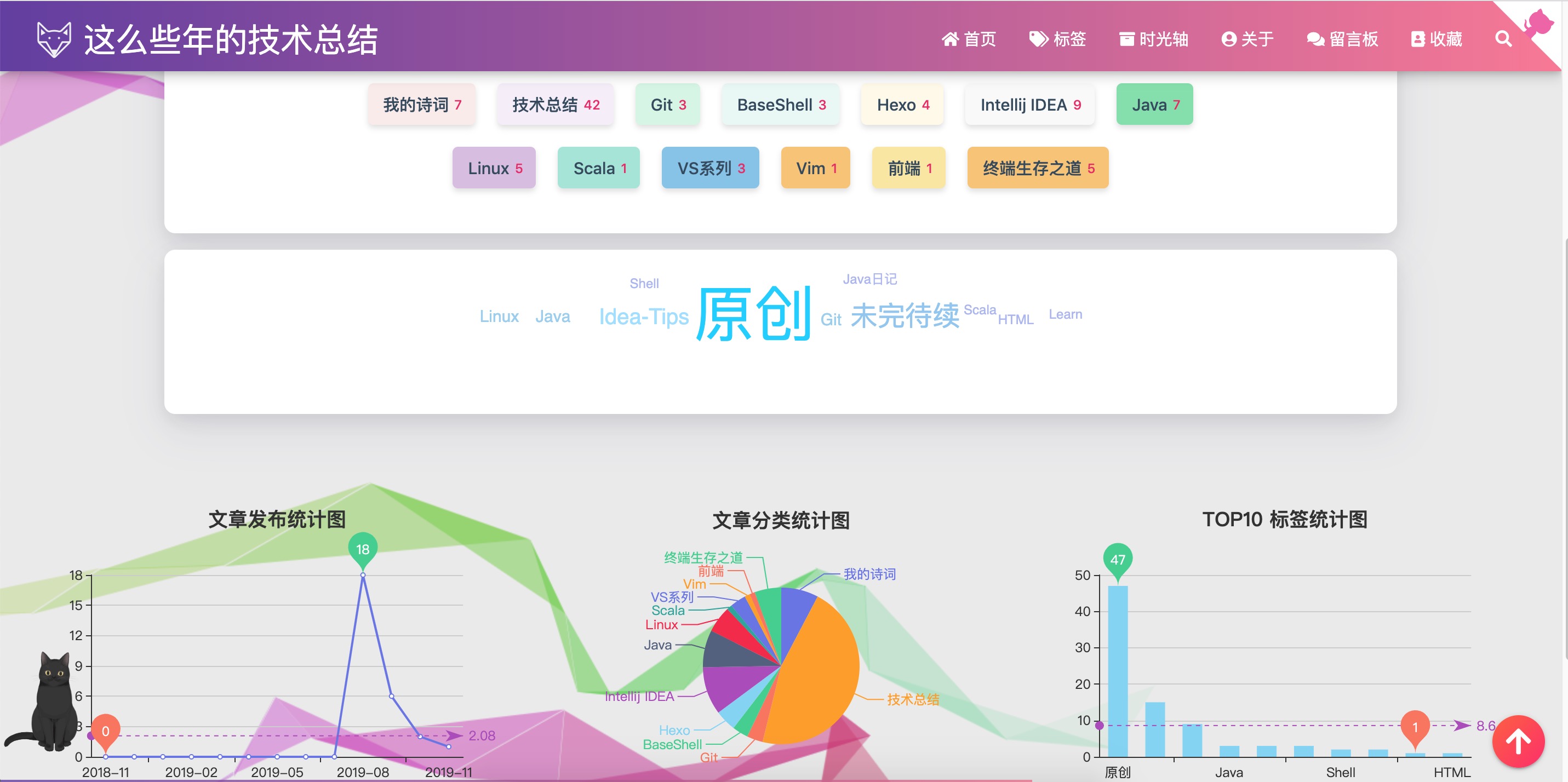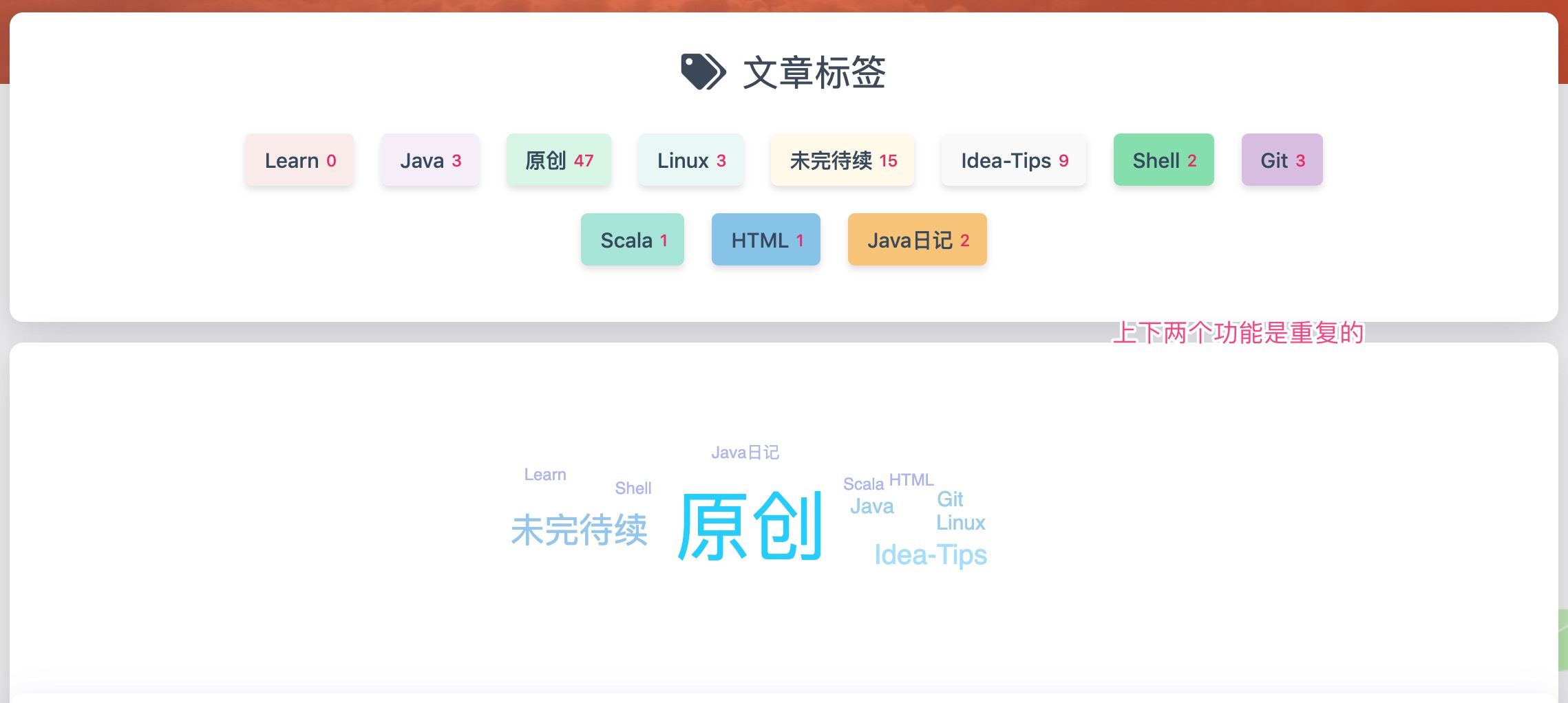 其目的是把标签、分类两个页面合二唯一,将所有关于文件分类统计的内容都放到标签页面,这样可以省出一个标签的位置来,顶部导航栏也不会太拥挤,效果如下