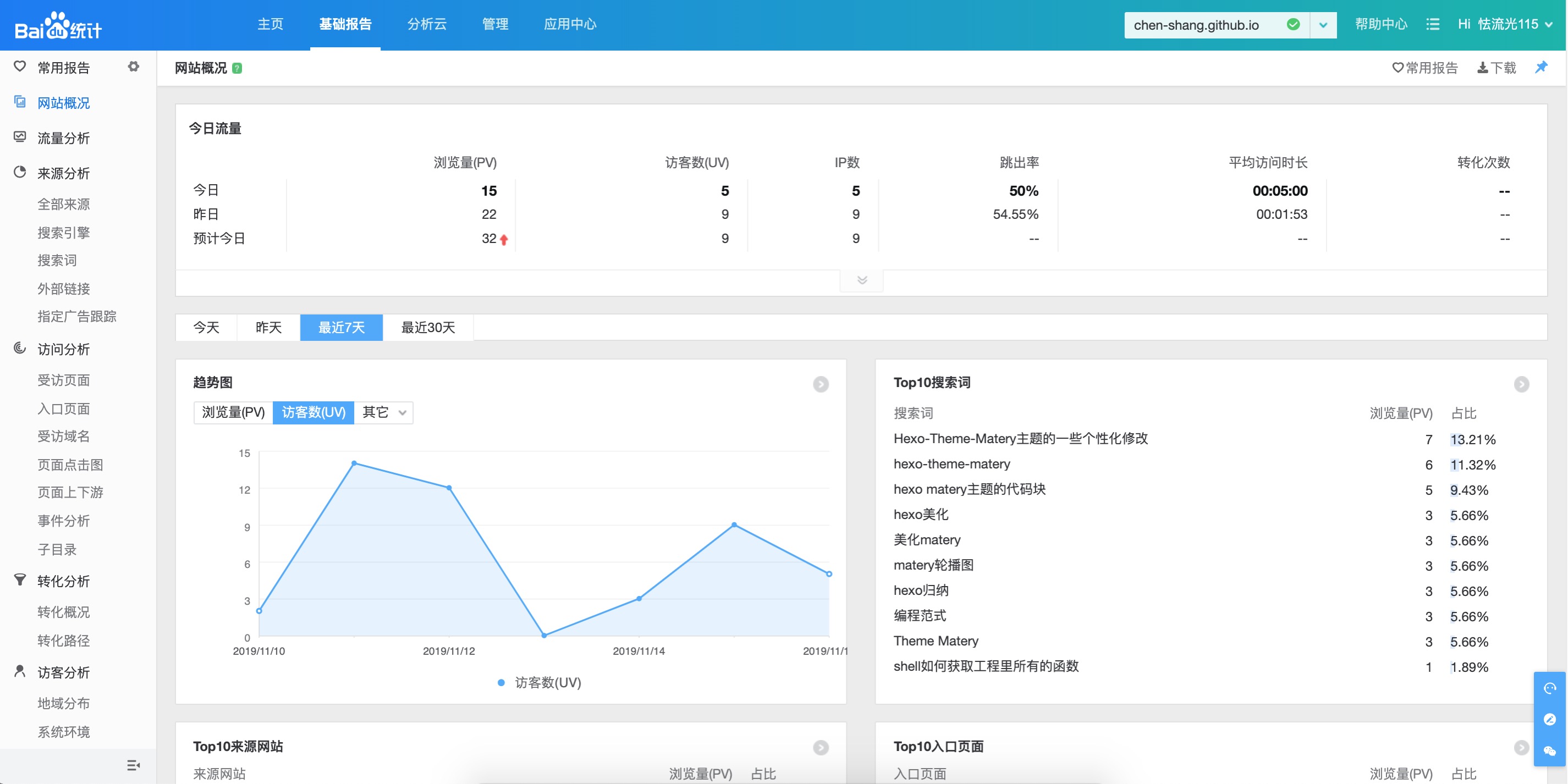 添加百度统计可以看到自己网站的访问情况等等
