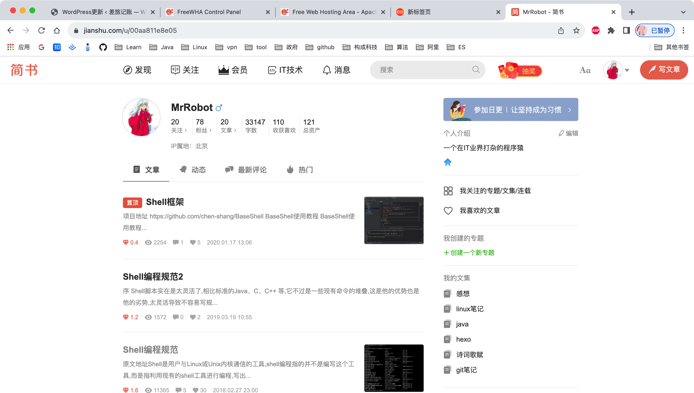 追求极简主义,学会了markdown,遇到了简书,开始在简书上写文章,而且有些文章被推到了首页,关注的人也很多,成就感再次爆棚。