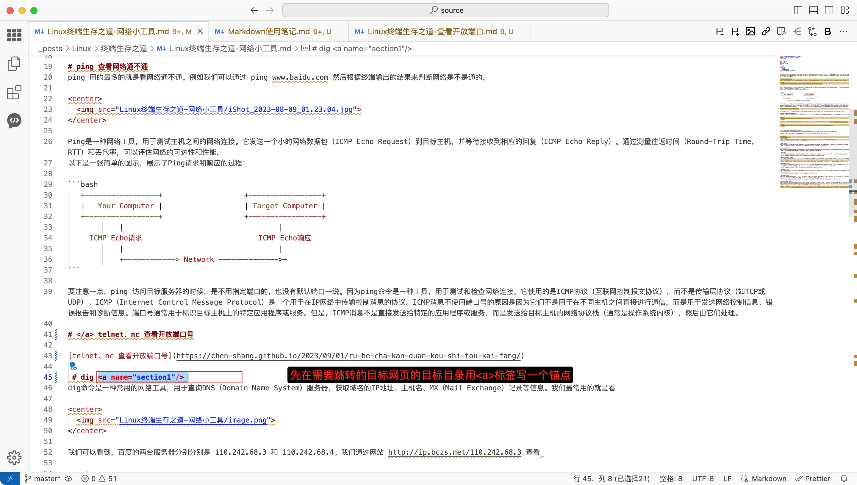 比如我想跳转到 Linux终端生存之道-网络小工具 这篇文章 的 dig 这个小节.