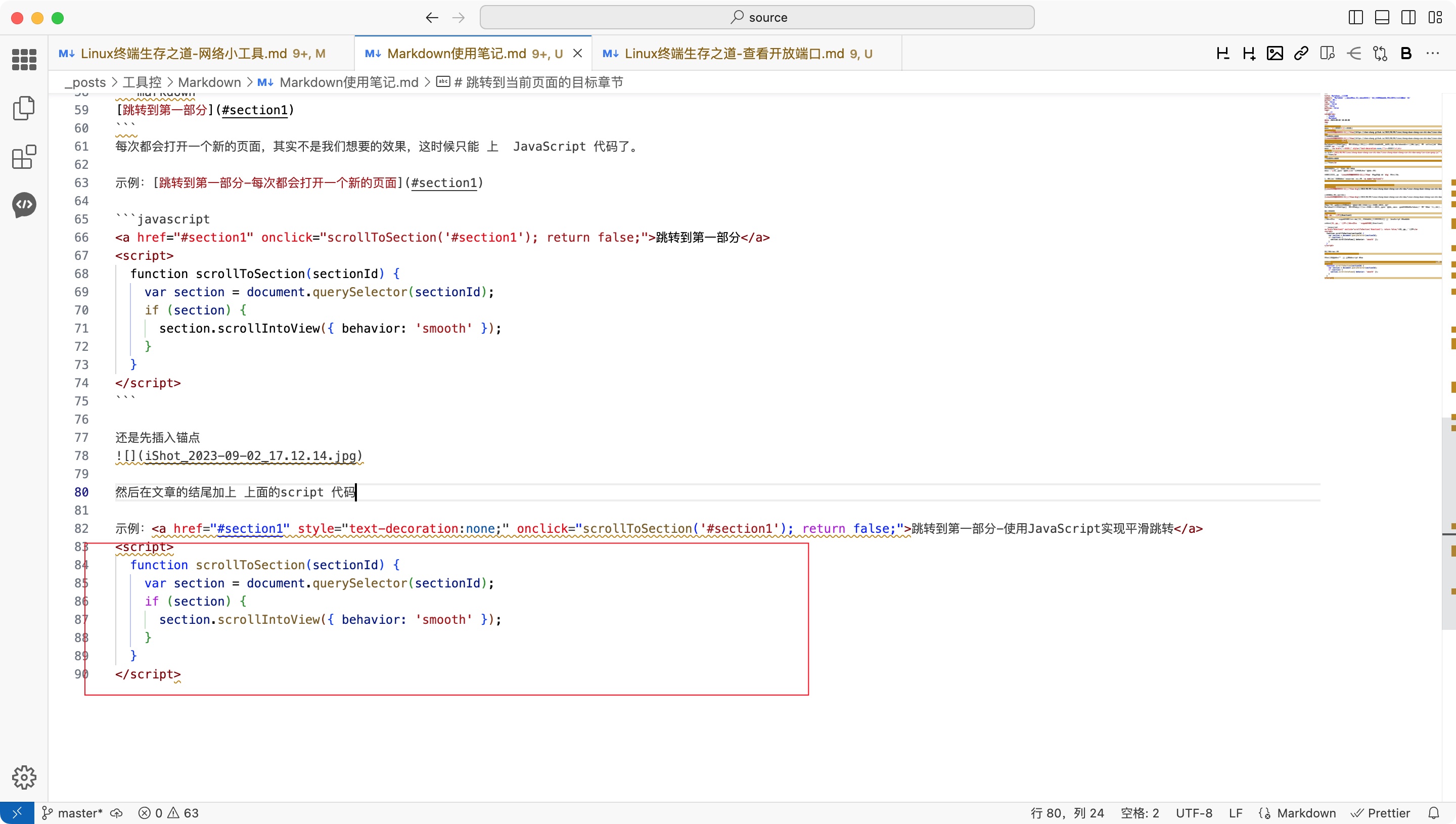 Markdown本身并没有提供一种直接的方式在当前页面中实现跳转到目标章节而不打开新的页面。Markdown是一种标记语言,主要用于文本的格式化和排版,并不支持页面内部的交互功能。