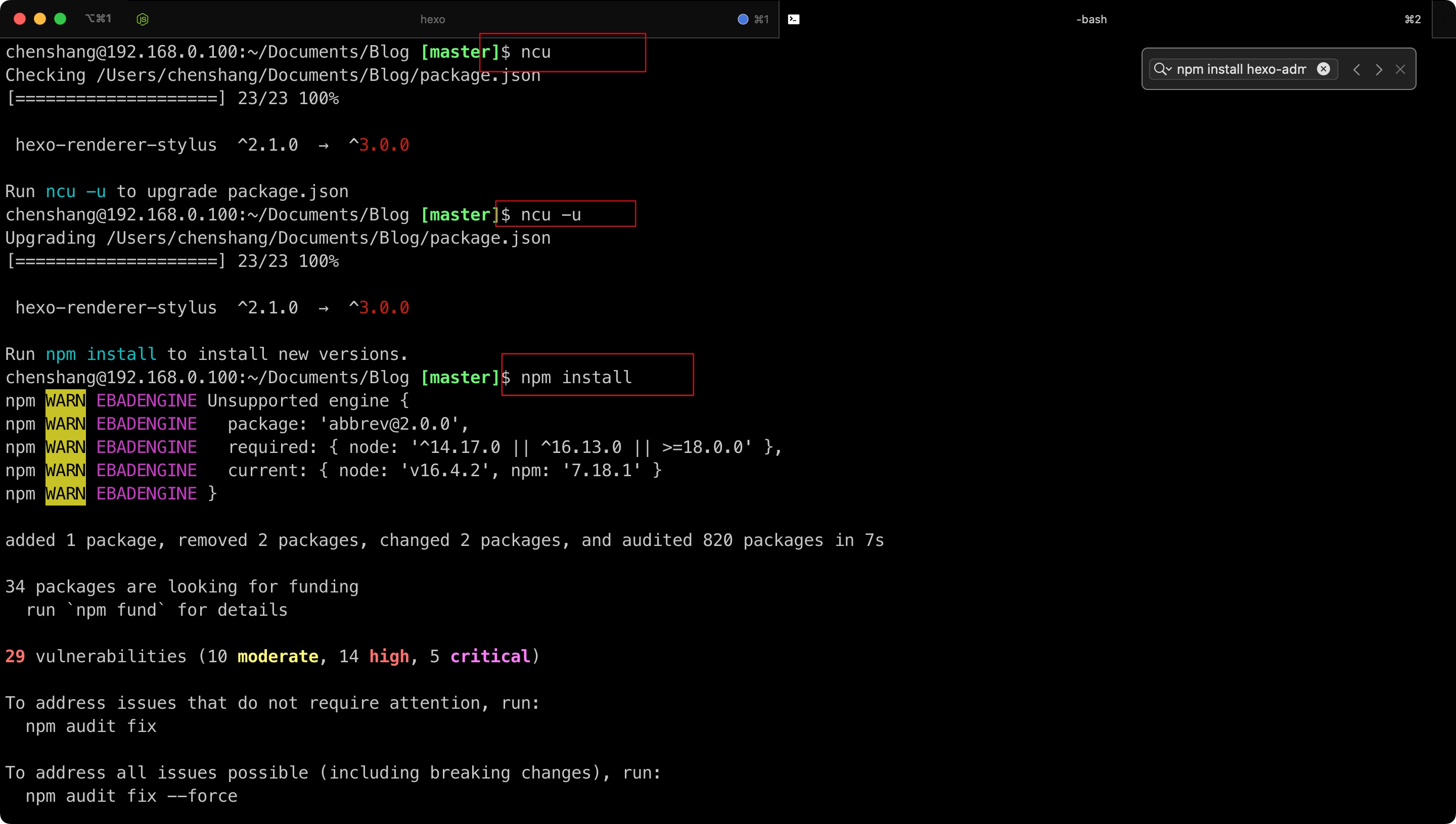 Upgrading /Users/tommy/blog/package.json