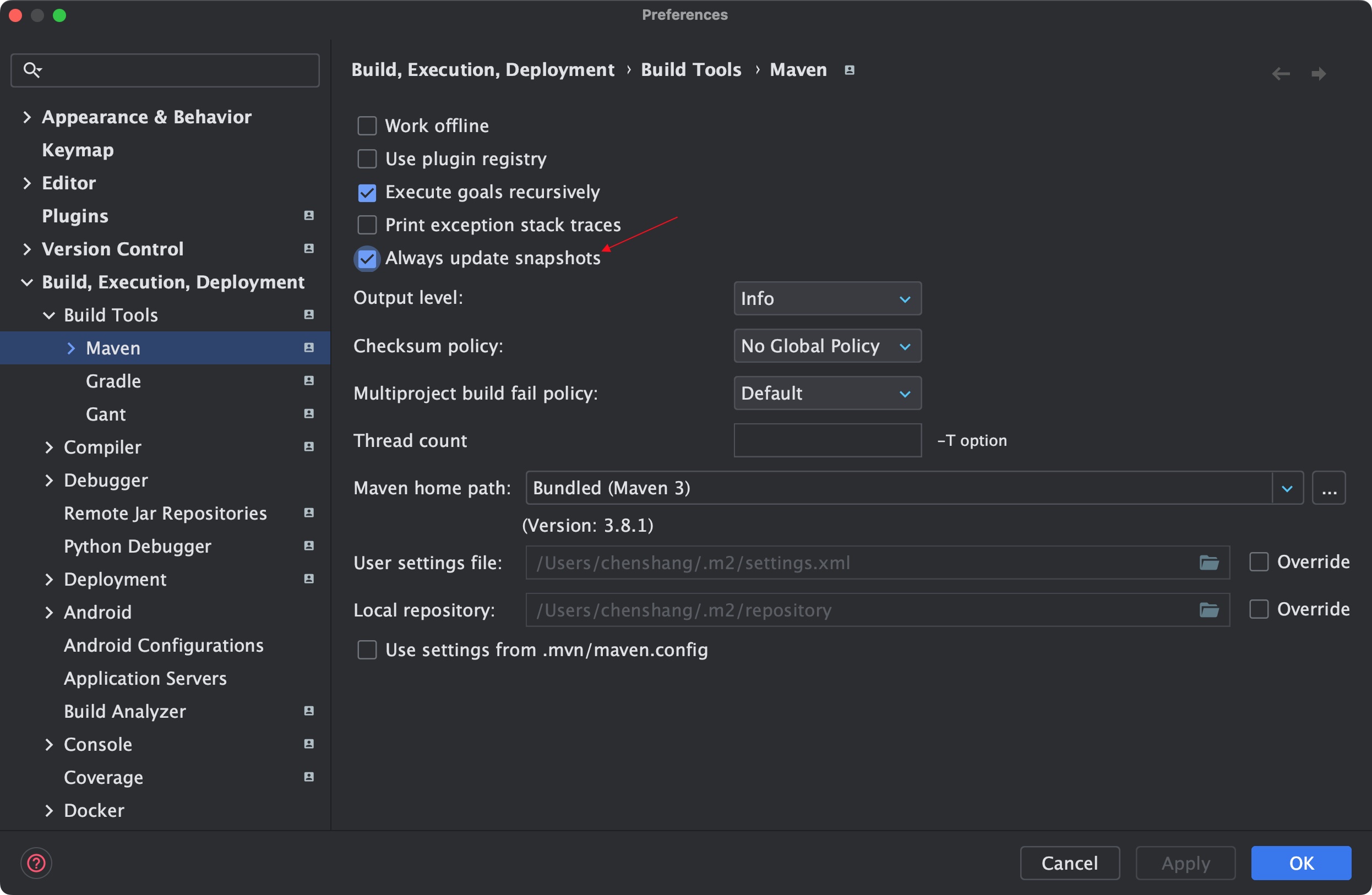 使用IDEA有时候 maven 下载下来的jar包不是最新的,尤其是有 SNAPSHOT 版本包的时候,无论你刷新多少次都无济于事。