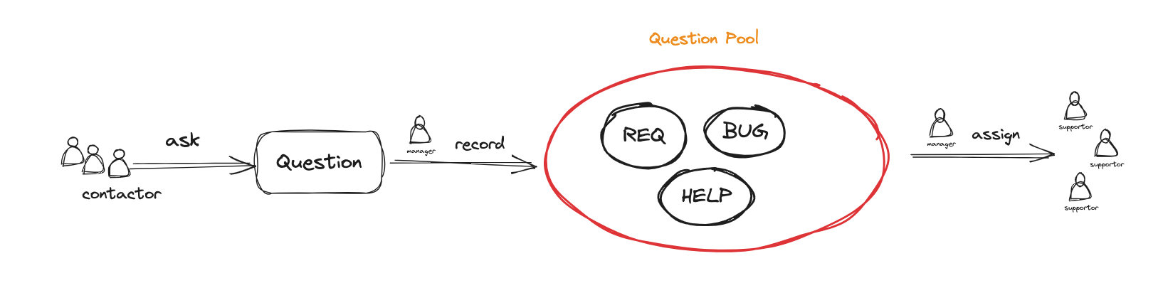 其实这个事情可以安排一个专门的人在每天的时候分一下就行。业务提出问题,项目管理员负责讲问题归结为 需求(REQ)、缺陷(BUG)、支持(HELP),然后指派到对应的人员进行解决。