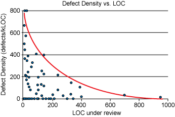 SmartBear对思科系统编程团队的研究表明,开发人员一次应该审查不超过200到400行的代码(LOC)。大脑一次只能有效地处理这么多信息;超过400LOC,发现缺陷的能力就会减弱。一次推给别人 1000+ 行代码,还想得到有价值建议的可能性微乎其微。在实际操作中,60到90分钟内对200-400LOC的审查应该能够发现70-90%的缺陷。因此,如果代码中存在10个缺陷,正确进行的审查将发现其中7到9个。