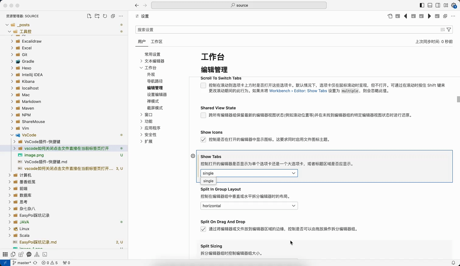 真正生效的应该是下面这个。 搜索 show tabs