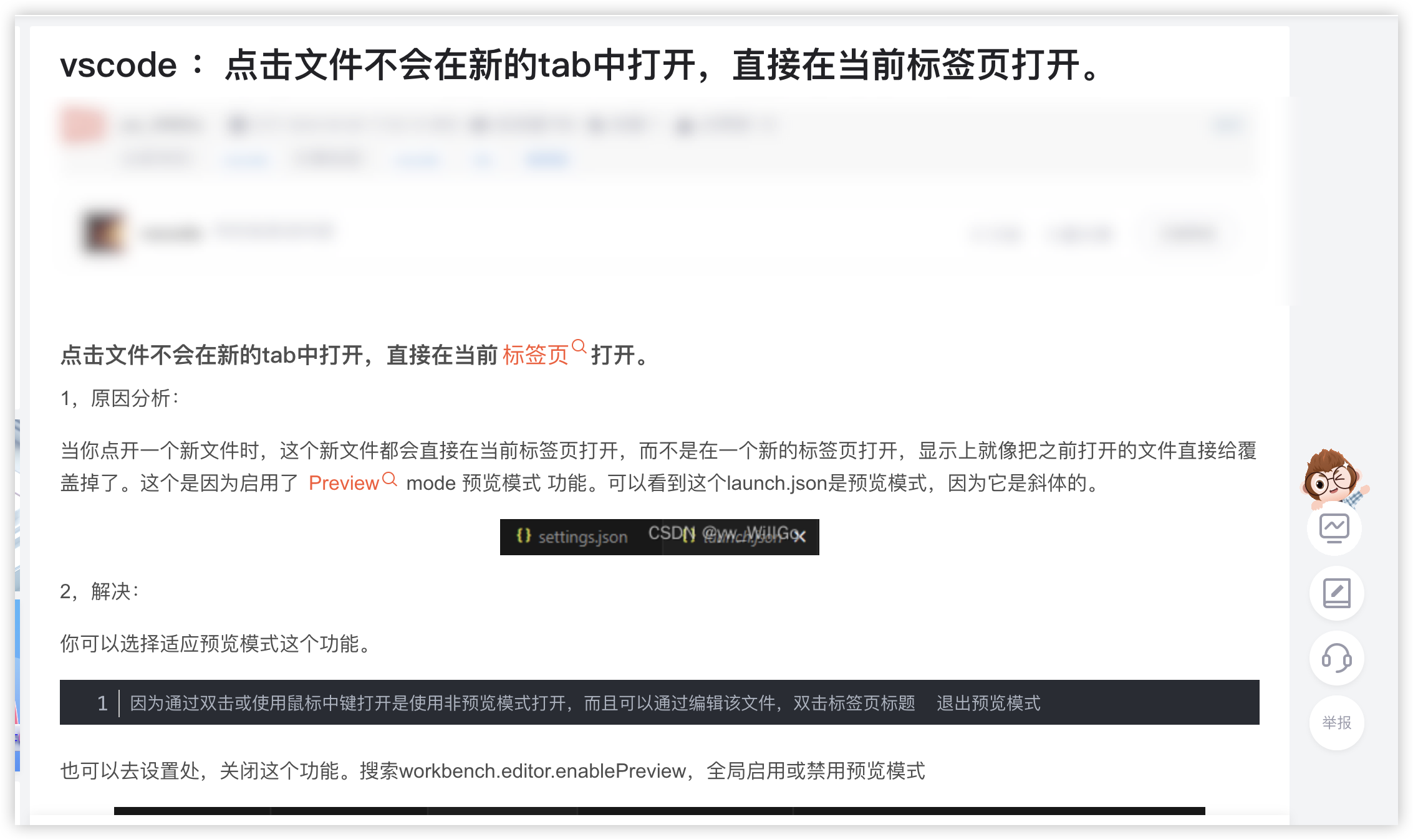 最近也不知道怎么设置滴,vscode点击文件直接在当前标签页打开,而不再在新的tab页打开了。这很不方便,找了半天才找到在哪里设置