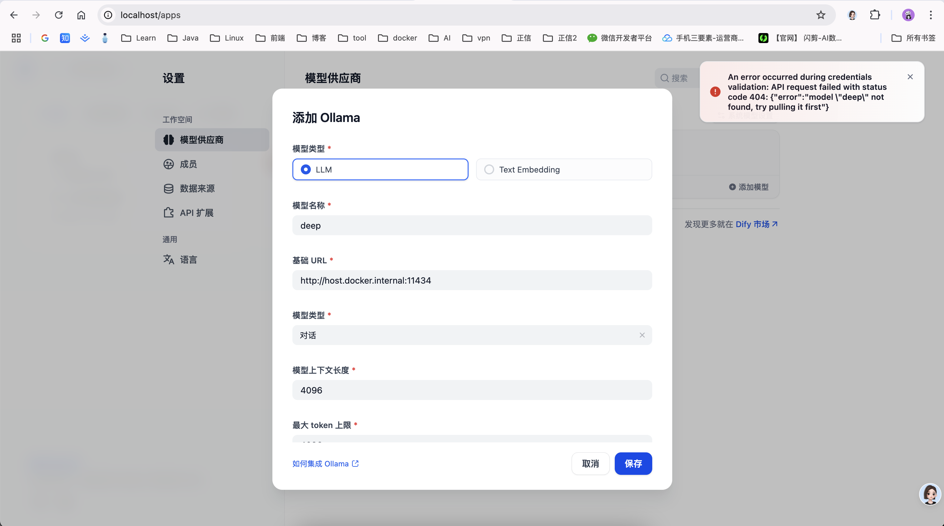 dify 想添加本地 ollama 下载安装的模型