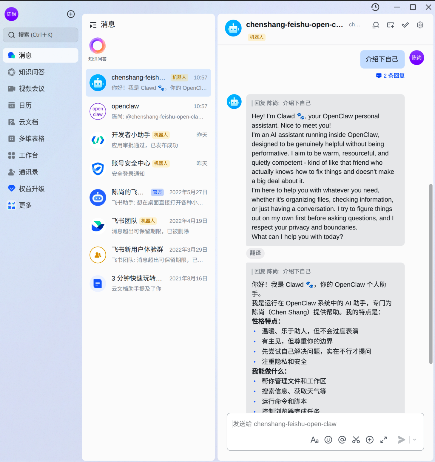听说这玩意会删除本地的东西,比如本地文件、比如你的数据库的数据,最近听说有人的飞书被爆破了(因为配置不当)导致个人的隐私信息泄漏了。所以我一直没敢碰这玩意。