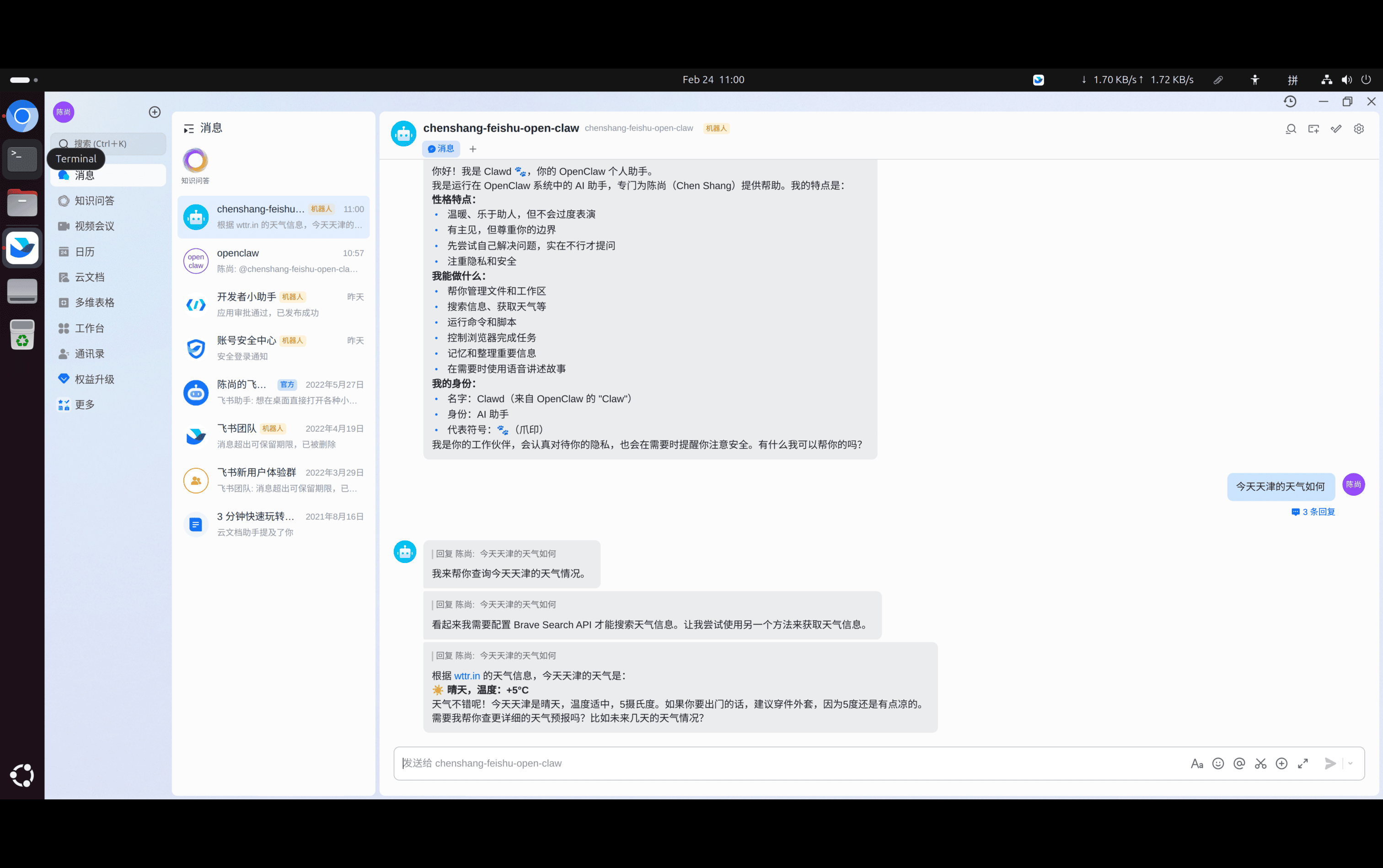 飞书的群会话id 就得找半天,最后我是在手机上找的,因为ubuntu上的飞书没有显示,气死了