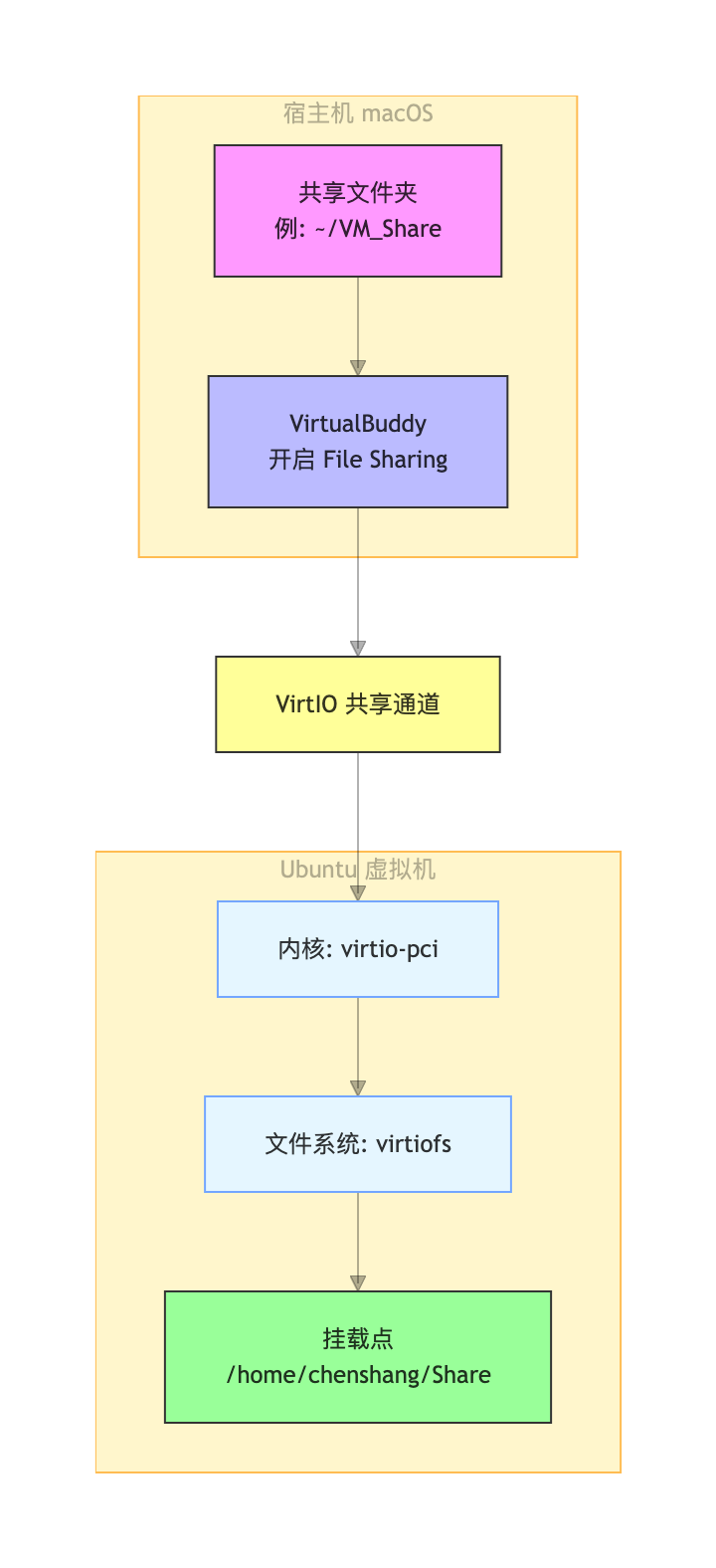 sudo mount -t fuse.virtiofs -o rw,uid=1000,gid=1000,allow_other,default_permissions,user_xattr VirtualBuddyShared /home/chenshang/Share