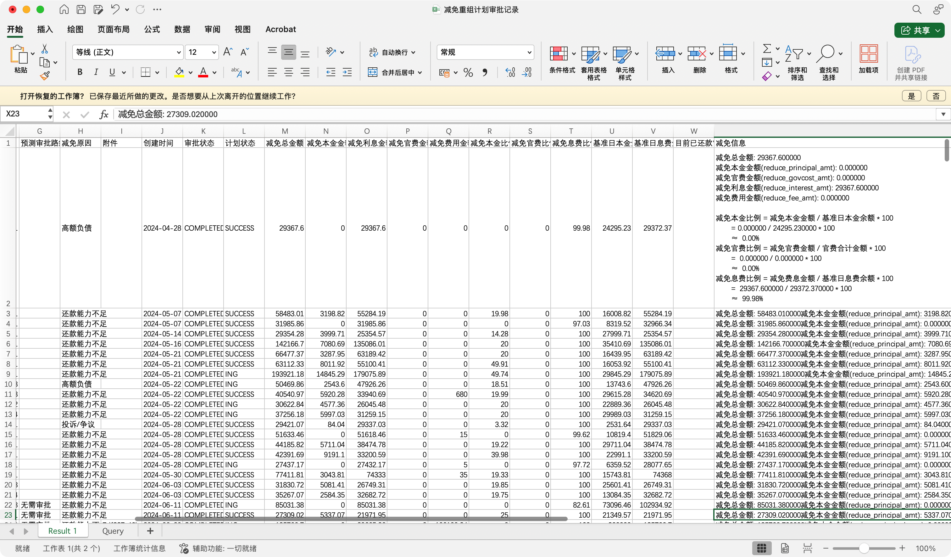 -- auto-generated definition create table rm_restructure_plan ( id bigint auto_increment comment 'id' primary key, created_by varchar(64) not null comment '创建人', created_date datetime not null comment '创建时间', last_modified_by varchar(64) not null comment '最后更新人', last_modified_date datetime default CURRENT_TIMESTAMP not null on update CURRENT_TIMESTAMP comment '最后更新时> 间', org_by varchar(64) not null comment '当前组织', owned_by varchar(64) not null comment '组织拥有者', tenant_id varchar(64) not null comment '当前租户', is_deleted bigint not null comment '是否删除', flow_status varchar(64) null comment '流程状态', flow_insert_data varchar(64) null comment '是否插入业务数据', apply_user_id varchar(255) not null comment '申请人', control_type varchar(64) null comment '控制类型', repay_num_type varchar(64) null comment '还款次数类型', repay_total_num int not null comment '还款期数', reduce_reason varchar(255) null comment '减免原因', cust_id bigint null comment '债务人', asset_id bigint null comment '资产包', promise_repay_date datetime not null comment '承诺还款时间', delayable_days int default 0 null comment '可延缓天数', repay_total_amt decimal(24, 6) not null comment '还款总金额', reduce_total_amt decimal(24, 6) not null comment '减免总金额', reduce_principal_amt decimal(24, 6) not null comment '减免本金金额', reduce_interest_amt decimal(24, 6) default 0.000000 not null comment '减免利息金额', reduce_govcost_amt decimal(24, 6) null comment '减免官费金额', reduce_fee_amt decimal(24, 6) null comment '减免费用金额', reduce_other_amt decimal(24, 6) default 0.000000 null comment '减免其他金额', repayed_amt decimal(24, 6) default 0.000000 null comment '已还款金额累计', plan_status varchar(64) null comment '计划状态', reduce_total_rate decimal(24, 6) null comment '减免总额比例', reduce_principal_rate decimal(24, 6) null comment '减免本金比例', reduce_govcost_rate decimal(24, 6) null comment '减免官费比例', reduce_interest_fee_rate decimal(24, 6) null comment '减免息费比例', attachment_id varchar(1024) null comment '附件', remark varchar(1024) null comment '备注', apply_flow_id bigint null comment '审批策略', outer_approval_id varchar(255) null comment '外部申请id', has_reduce_principal varchar(64) null comment '本金是否减免', debtor_name varchar(255) null comment '债务人姓名', debtor_cert_no varchar(255) null comment '身份证号', need_next_check varchar(64) null comment '需要下级审批', last_repay_date datetime null comment '上次还款时间', apply_org_by bigint null comment '申请机构', original_pricipal_amt decimal(24, 6) null comment '基准日本金余额', original_interest_fee_amt decimal(24, 6) null comment '基准日息费余额', max_gov_amt decimal(24, 6) null comment '官费合计金额', reduce_interest_fee_amt decimal(24, 6) null comment '减免费息金额', asset_type varchar(64) null comment '资产包业务类型', asset_name varchar(255) null comment '资产包名称', approval_route varchar(255) null comment '审批路线', current_repayed_amt decimal(24, 6) null comment '目前已还款金额', original_total_amt decimal(24, 6) null comment '基准日总额', original_interest_amt decimal(24, 6) null comment '基准日利息', original_fee_amt decimal(24, 6) null comment '基准日费用', original_gov_amt decimal(24, 6) null comment '基准日官费', current_repayed_pricipal_amt decimal(24, 6) null comment '目前已还款本金', current_repayed_interest_fee_amt decimal(24, 6) null comment '目前已还款息费', current_repayed_gov_amt decimal(24, 6) null comment '目前已还款官费', cancel_time datetime null comment '作废时间', cancel_reason varchar(255) null comment '作废原因', agree_time datetime null comment '审批通过时间', source varchar(64) null comment '来源', current_principal_balance decimal(24, 6) null comment '当前剩余本金', current_interest_balance decimal(24, 6) null comment '当前剩余利息', current_gov_balance decimal(24, 6) null comment '当前剩余官费', current_fee_balance decimal(24, 6) null comment '当前剩余费用', current_interest_fee_balance decimal(24, 6) null comment '当前剩余息费', plan_flag_type varchar(64) default 'RESTRUCTURE_ADVICE' null comment '重组标识类型', phone varchar(512) null comment '加密电话' ) comment '重组减免计划表';更新:添加上